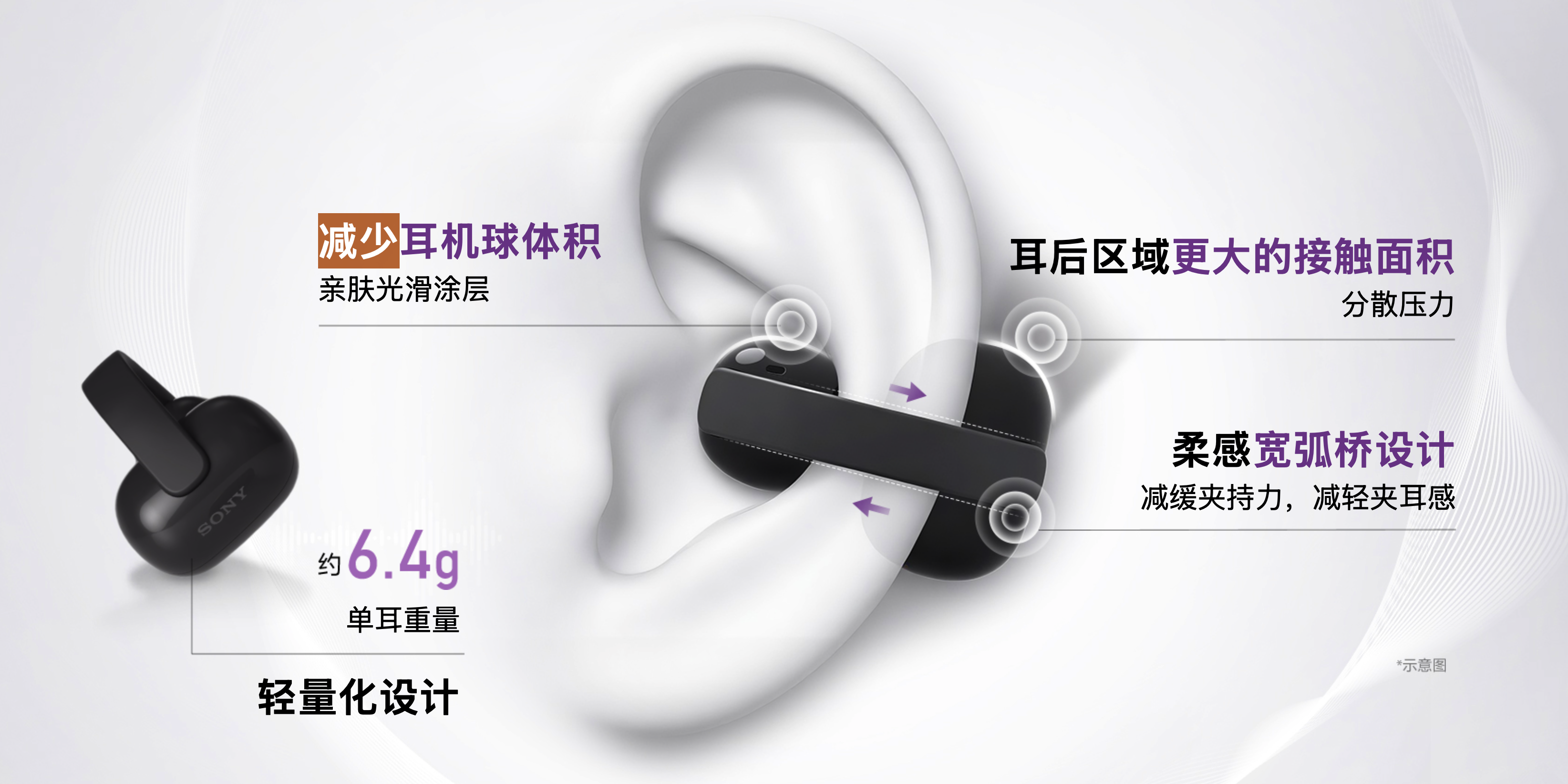 这款全新耳夹耳机主打轻量化设计,采用C形桥开放式设计,可通过固定在耳朵外侧保证佩戴稳定性。用户还可调整侧翼撑架,实现贴合佩戴感,同时赋予LinkBuds Clip更灵活的适配性,能够满足不同耳型的佩戴需求。