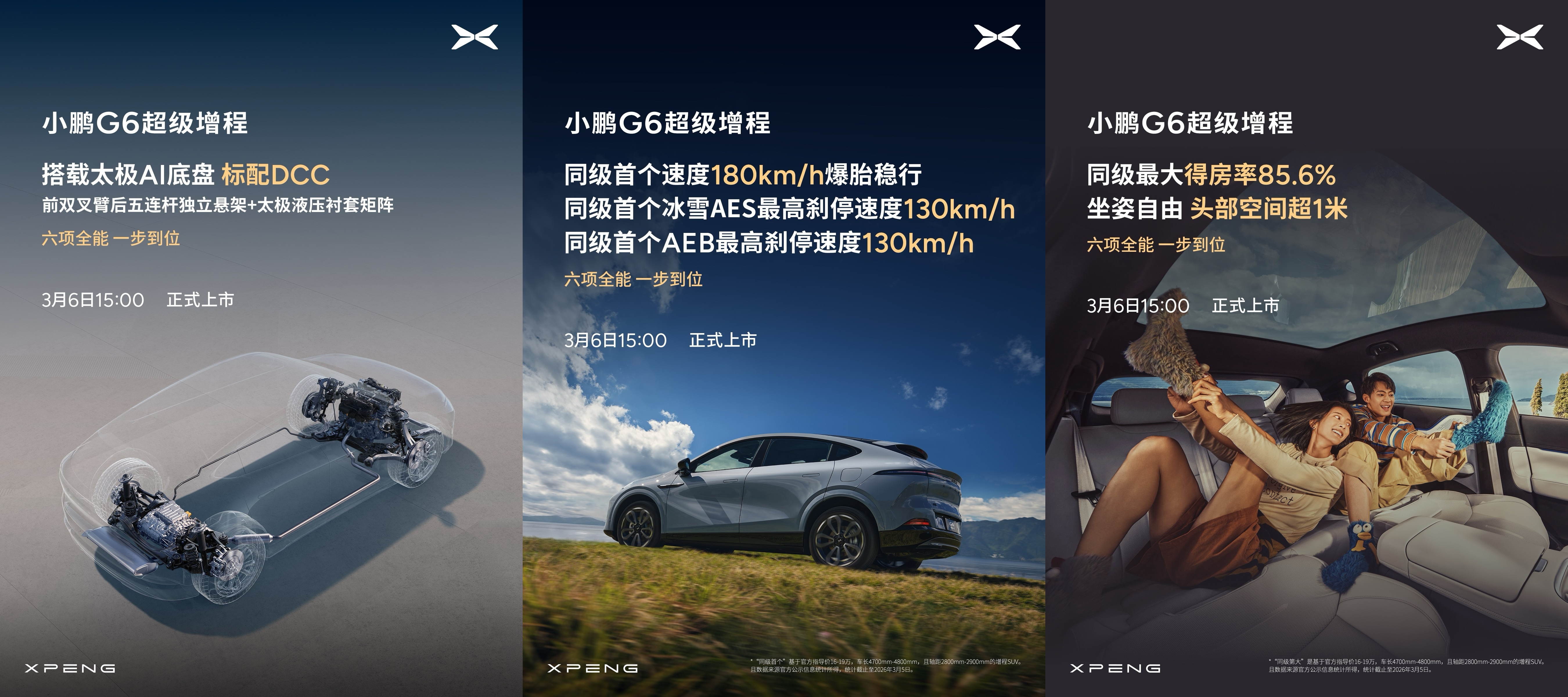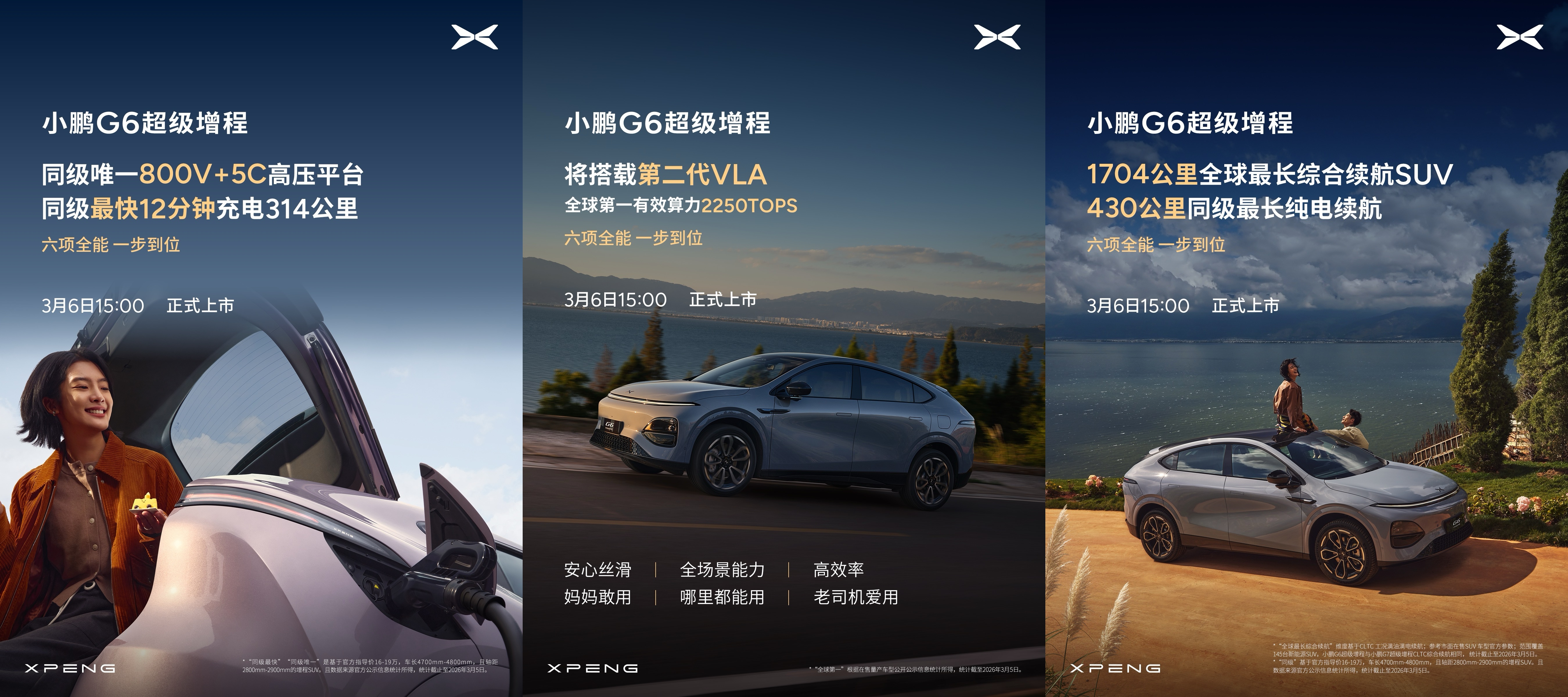 3月5日消息,小鹏汽车官方今日正式宣布,小鹏G6超级增程轿跑SUV将于3月6日15:00正式上市,官方以“六项全能 一步到位”为其核心宣传点,引发市场广泛关注。